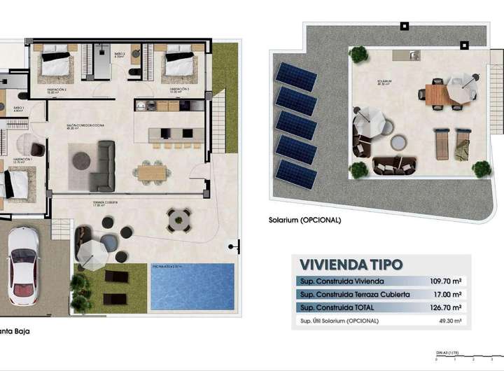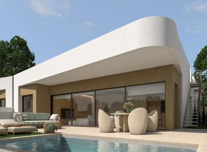 Die Wohnanlage besteht aus nur 14 modernen Eckvillen, die alle auf einer Ebene verteilt sind, um maximalen Komfort und Barrierefreiheit zu gewährleisten. Jede Immobilie verfügt über 3 geräumige Schlafzimmer und 2 Badezimmer, darunter ein Hauptschlafzimmer mit eigenem Bad. Alle Häuser sind auf Privatsphäre und Funktionalität ausgelegt und verfügen über einen privaten Swimmingpool, einen Parkplatz auf dem Grundstück und großzügige Außenbereiche, um das mediterrane Klima das ganze Jahr über genießen zu können. Gegen Aufpreis besteht auch die Möglichkeit, ein privates Solarium hinzuzufügen, das zusätzlichen Platz zum Sonnenbaden oder Entspannen bietet.