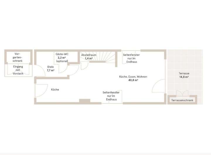 Ohne Einbauküche und dargestellter Möbel. Bilder sind Einrichtungsbeispiele.