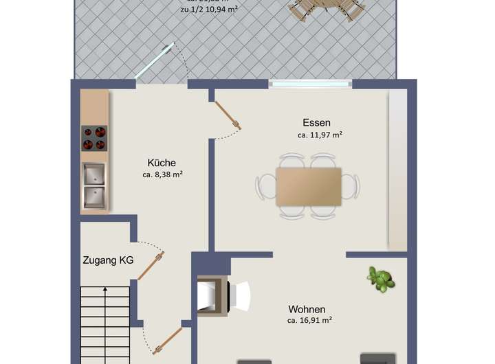 + Großzüger Wohn-und Essbereich