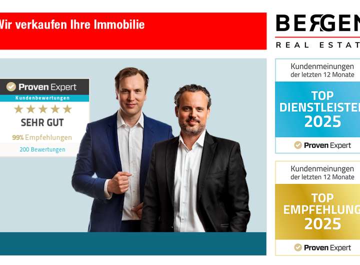 Wir bieten die Immobilie im qualifizierten Alleinauftrag an. Die Provision für den Käufer beträgt 7,14% inkl. der gesetzlichen Mehrwertsteuer des Kaufpreises und ist für den Käufer mit dem Zustandekommen des Kaufvertrages (notarieller Vertragsabschluss) verdient und fällig. Die vermittelnde und/oder nachweisende Bergen Real Estate GbR und ggf. deren Beauftragter, erhalten einen unmittelbaren Zahlungsanspruch gegenüber dem Käufer (Vertrag zugunsten Dritter, § 328 BGB). Alle Angaben sind ohne Gewähr und basieren ausschließlich auf Informationen, die uns von unserem Auftraggeber übermittelt wurden. Wir übernehmen keine Gewähr für die Vollständigkeit, Richtigkeit und Aktualität dieser Angaben. Die Weitergabe dieses Exposés an Dritte ohne unsere Zustimmung löst gegebenenfalls Courtage- bzw. Schadensersatzansprüche aus. Im Übrigen gelten unsere Allgemeinen Geschäftsbedingungen. Irrtum und Zwischenverkauf vorbehalten.