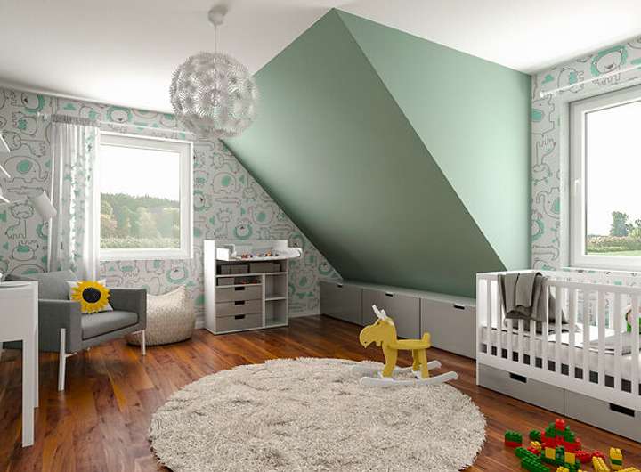 Das Flair 113 bietet alles, was ein Massivhaus gemütlich macht. Im Erdgeschoss betreten Sie ein geräumiges Wohn- und Esszimmer, eine Küche mit genügend Freiraum, ein Gäste-WC und einen Hauswirtschaftsraum mit ausreichend Platz für Waschmaschine und Co. Im Dachgeschoss erwarten Sie neben drei weiteren geräumigen Zimmern ein komfortabel ausgestattetes Badezimmer.