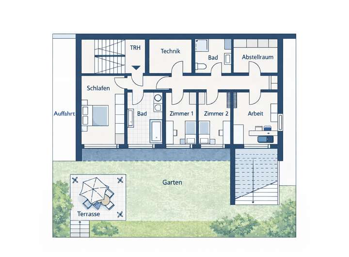 - Smart & Efficient: Intelligente Haustechnik inklusive eines modernen Be- und Entlüftungssystems für nachhaltiges Wohnen.