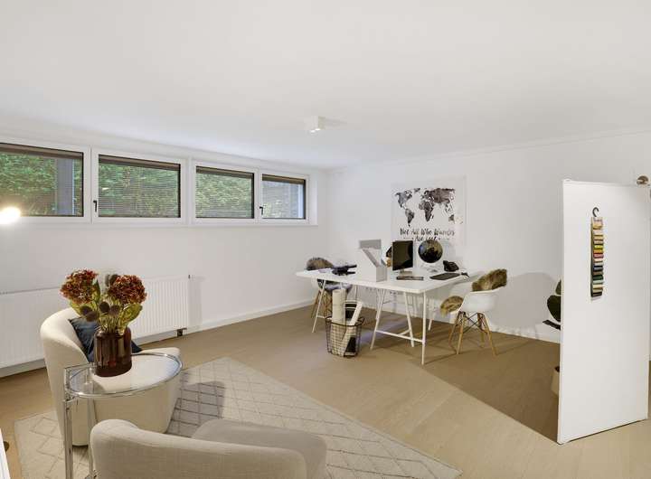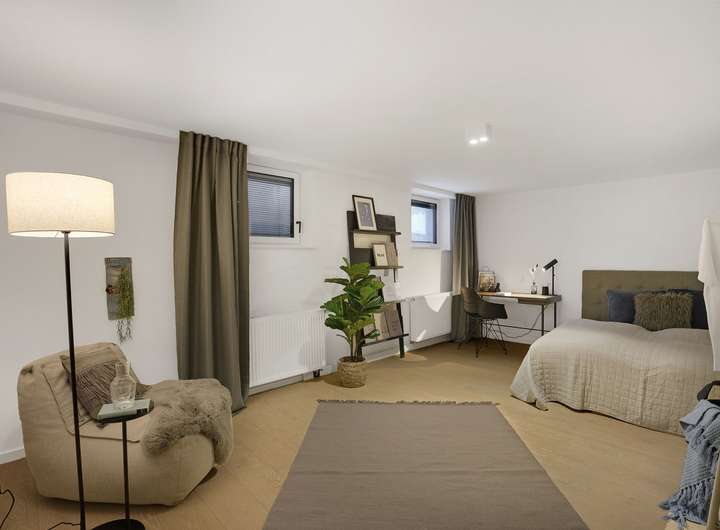 Vollwertiges Untergeschoss mit einem Büro, zwei Wohnräume und einem Bad – auch als Einliegerwohnung nutzbar; zusätzliche Abstellräume, Heizungsraum und direkter Zugang nach draußen
