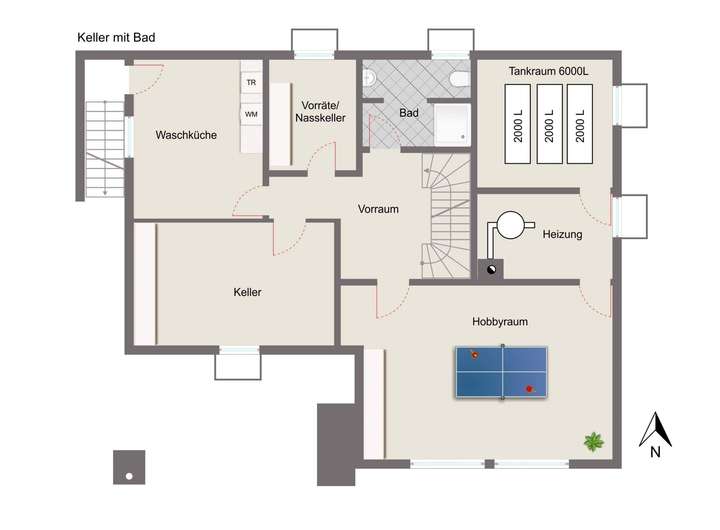Das Haus ist voll unterkellert und überzeugt mit umfangreichen Abstell- und Nutzflächen, ein Bad mit WC und Dusche, die alles im allem vielfältige Nutzungsmöglichkeiten bieten.
