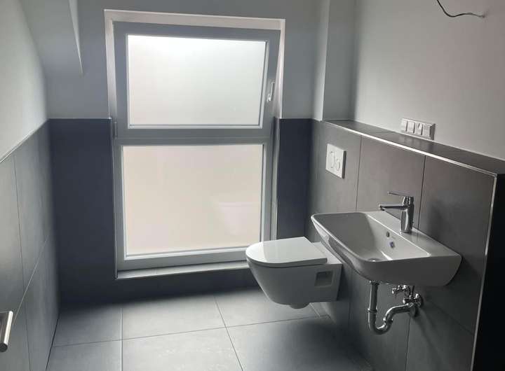 Alle Räume sind entweder mit einem hochwertigen Vinylboden in Echtholzoptik ausgestattet, der eine warme und wohnliche Atmosphäre schafft, oder mit schönen Bodenfliesen in anthrazit ausgelegt