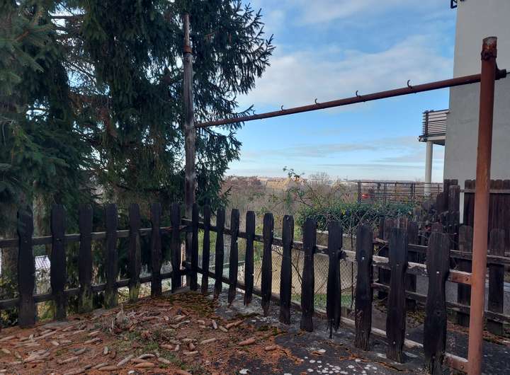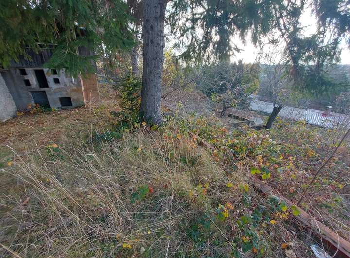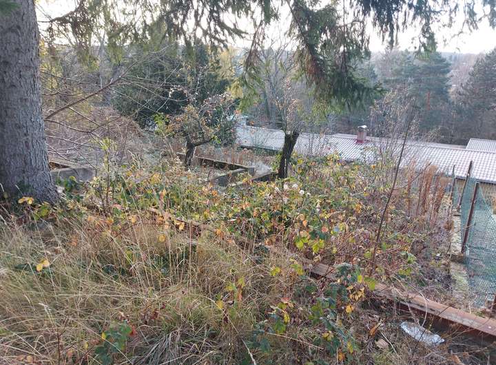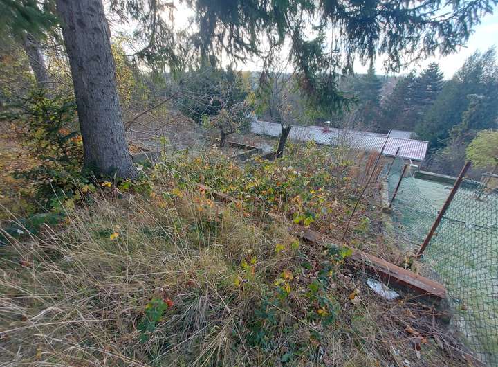 Sie blicken hier auf ein Grundstück am Hang, welches einen wunderschönen Blick Richtung Natur hergibt.
