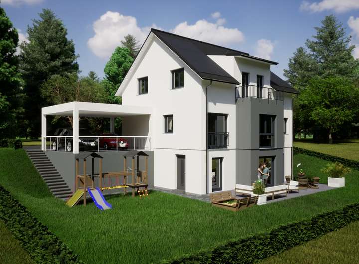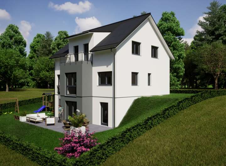 Aktuell ist das Hang-Grundstück noch mit einem Bestandsgebäude bebaut, welches abgerissen werden muss.
