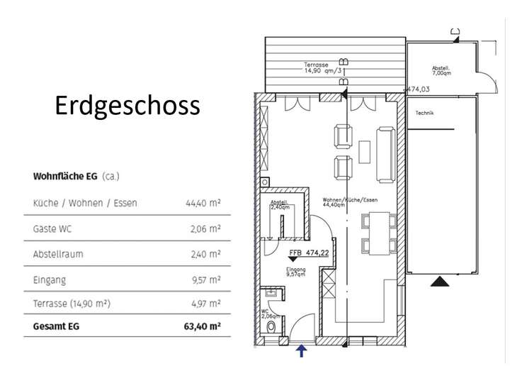 Im Erdgeschoss befinden sich der großzügige Wohn-Ess-Kochbereich mit Zugang zur Terrasse und dem eigenen Gartenanteil, das Gäste-WC, sowie ein Abstellraum. Der Garten umfasst eine Fläche von 95 m² und lädt zum gemütlichen Zusammensein mit Freunden ein.