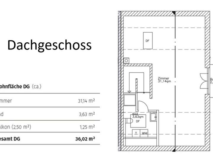 Ein ca. 35 m² großes Studio mit Dachflächenfenstern und kleinem Balkon erwartet Sie im Dachgeschoss der Doppelhaushälfte. Auch hier befindet sich ein Bad mit WC und Dusche.