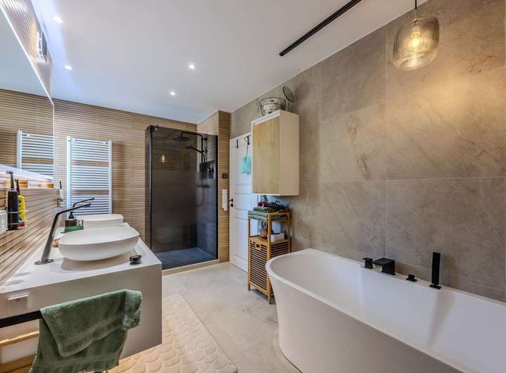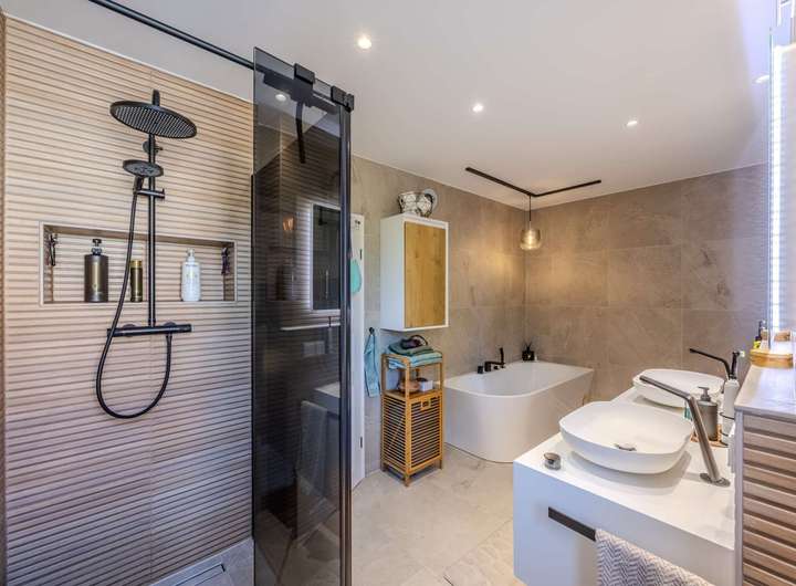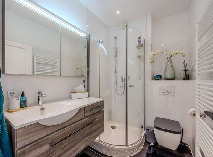 + 2 hochwertige Badezimmer (1x Tageslichtbad mit Walk-In-Dusche und Badewanne (2023), 1x innenliegend mit Dusche)