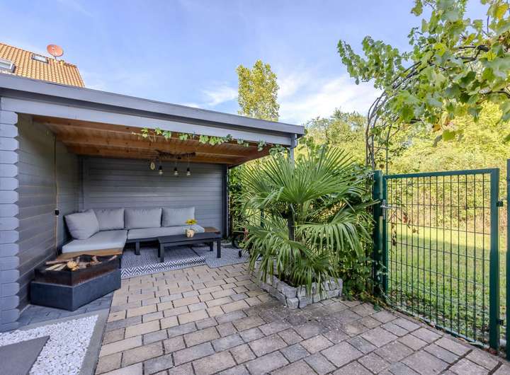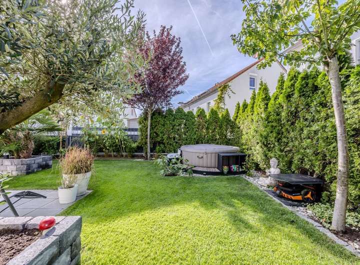 Der sehr gepflegte Außenbereich mit Garten, Terrasse (inkl. elektrischer Markise) und Gartenhaus mit überdachtem Sitzbereich und Grillecke, lädt zum Entspannen ein. Ein Außenstellplatz sowie ein Garagenstellplatz stehen Ihnen ebenfalls zur Verfügung (zusammen zzgl. 20.000 €).