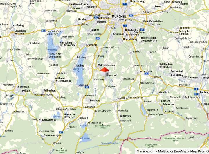 Geretsried im schönen Isartal - eine junge und dynamische Stadt - liegt ca. 4 km südöstlich von Wolfratshausen an der B11 mit guten Verkehrsanbindungen über die westlich verlaufende BAB München-Garmisch (mit dem Auto sind Sie in 30 Minuten in München), die S-Bahn ab Wolfratshausen (S7) und den guten Busverbindungen. Eine S-Bahn Verlängerung nach Geretsried ist bereits geplant. Als einwohnerstärkste Stadt im Landkreis Bad Tölz - Wolfratshausen mit ca. 25.000 Einwohnern bietet Geretsried eine moderne Infrastruktur. Schulen aller Art bis hin zum Gymnasium sind vorhanden. Hier finden Sie eine gelungene Mischung aus städtischem Flair mit großem sportlichen Angebot (z.B. Sportstadion, Hallenbad, Eisstadion) und ländlicher Romantik in Verbindung mit einem gesunden Preis-/Leistungsverhältnis.