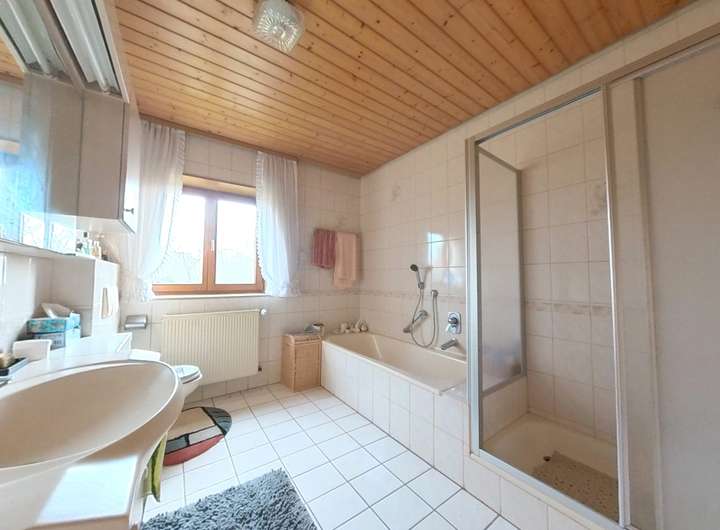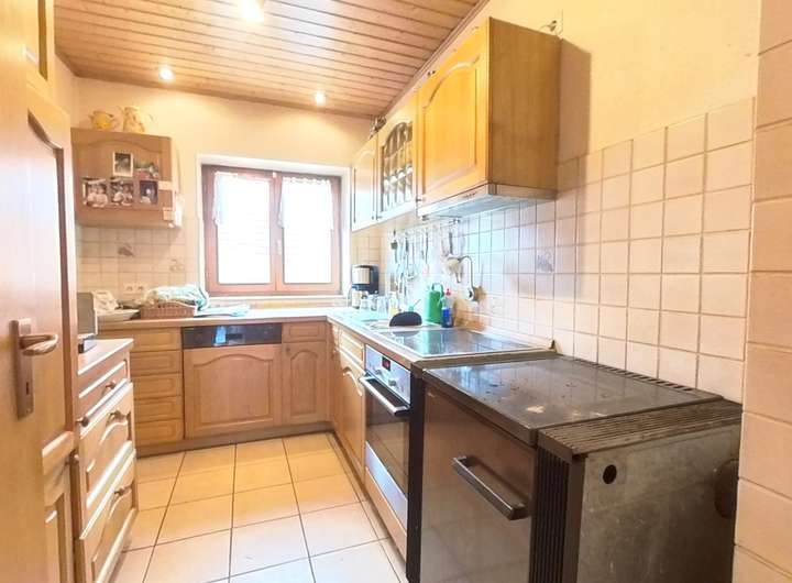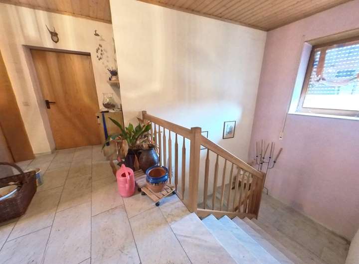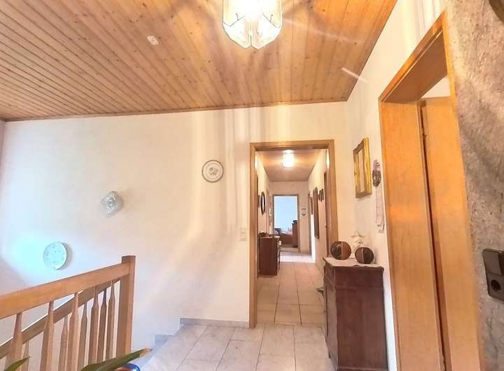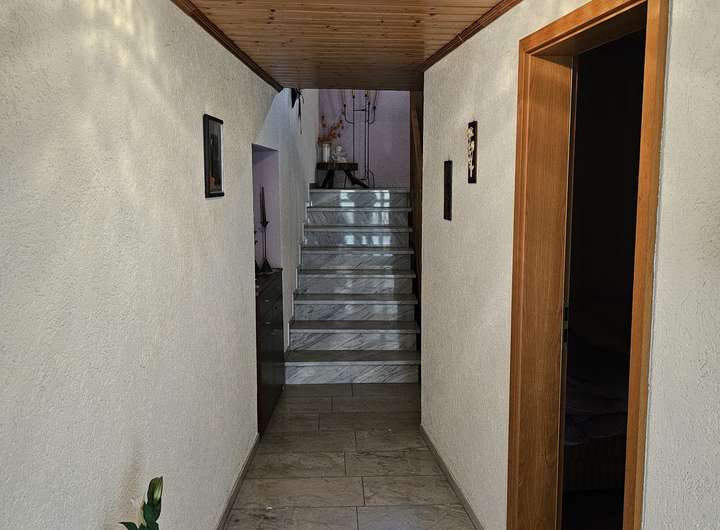 Im Erdgeschoss findet man die Waschküche mit Wc, einen Keller, den Technikraum, ein Schlafzimmer und den Zugang zur Doppelgarage. Über das Treppenhaus erreicht man zwei Schlafzimmer, ein Vollbad, ein Wohnzimmer, ein Esszimmer , eine Abstellkammer und die Küche mit Einbauküche. Eine Besichtigung lohnt sich...