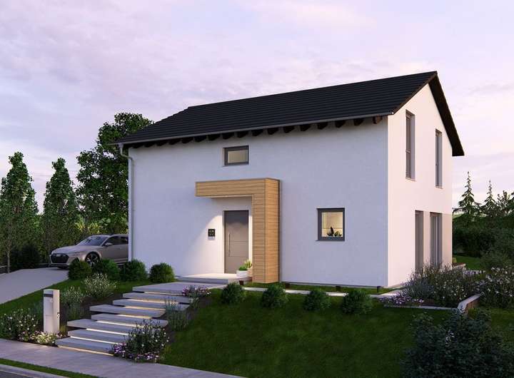Das Design 10.2 steht für modernes Wohnen mit Charakter. Auf 140 m² verbindet sie Design und Alltag auf harmonische Weise. Der offene Wohn- und Essbereich bildet das Herzstück - hell, großzügig und mit einer geraden Treppe, die als Designelement den Raum gliedert. Büro, Gäste-WC, Hauswirtschaftsraum und Speisekammer machen das Erdgeschoss ebenso funktional wie stilvoll. Im Obergeschoss empfängt ein lichtdurchfluteter Flur, der zu den privaten Rückzugsorten führt: ein Elternzimmer, zwei Kinderzimmer und ein großzügiges Familienbad. Unter dem klassischen Satteldach entsteht ein Zuhause, das Ästhetik und Geborgenheit vereint.