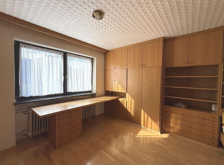 Das Erdgeschoss überzeugt durch helle, gut geschnittene Räume und ein angenehmes Wohnambiente. Hier stehen drei Schlafzimmer, ein separates Büro, ein Bad mit Dusche, ein Gäste-WC, ein großzügiges Wohnzimmer und eine Küche mit angrenzendem Esszimmer zur Verfügung.