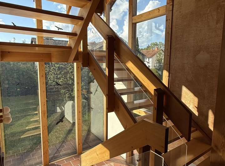 1986 wurde aufgestockt und ein Treppenhaus angebaut.