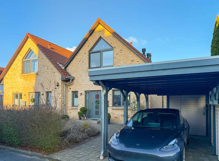Diese schöne, energieeffiziente Doppelhaushälfte bietet auf ca. 160 m² Wohn- und Nutzfläche aufgeteilt auf drei Etagen ein familiengerechtes Zuhause. Aus zwei Schlafzimmern, dem Wohnzimmer sowie dem Balkon und der Terrasse genießen Sie den Blick auf die angrenzenden Wiesen und Sumpflandschaft bis zur 600 Meter entfernten Schlei.