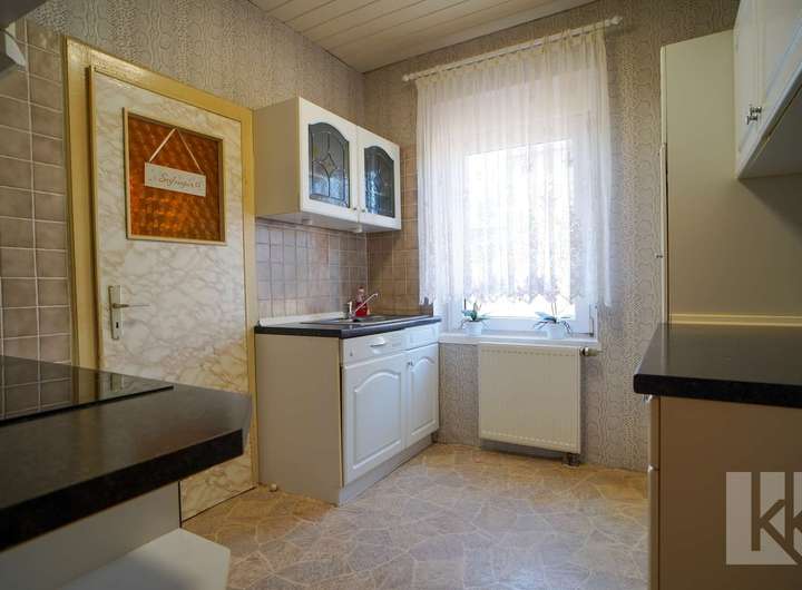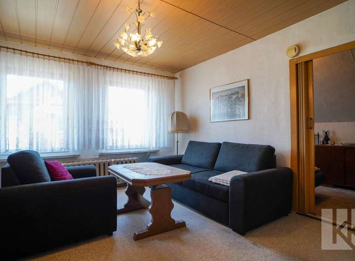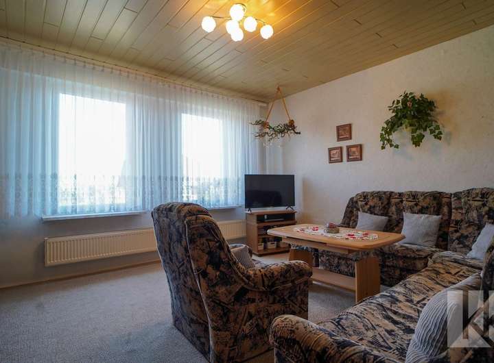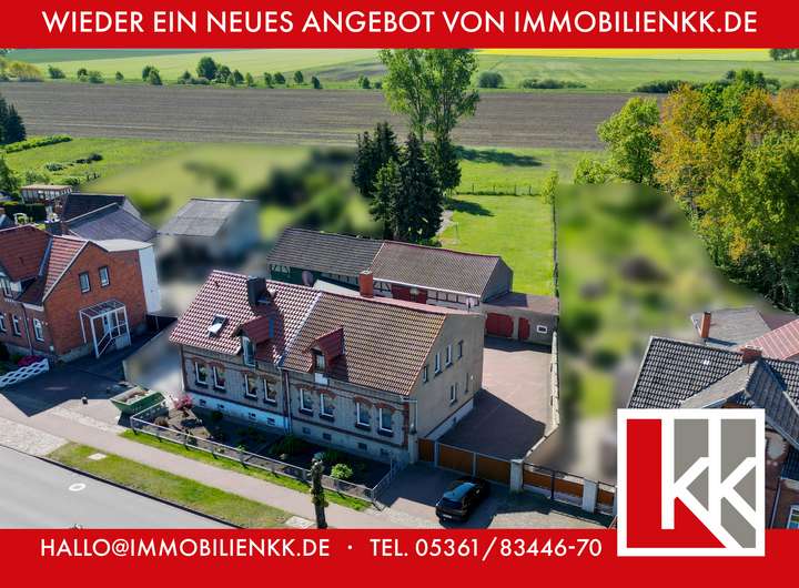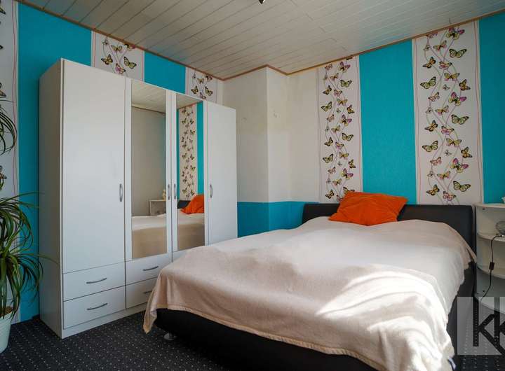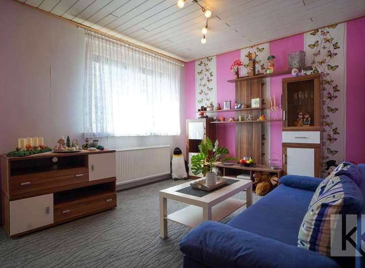 Sie befinden sich in einer 1900 massiv gebauten, voll unterkellerten Doppelhaushälfte, die mit einem Grundstück in einer Größe von 5088 m², von dem 3630 m² als Ackerland verpachtet sind, und einer Wohn- und Nutzfläche von 174 m² überzeugt.