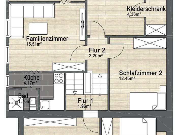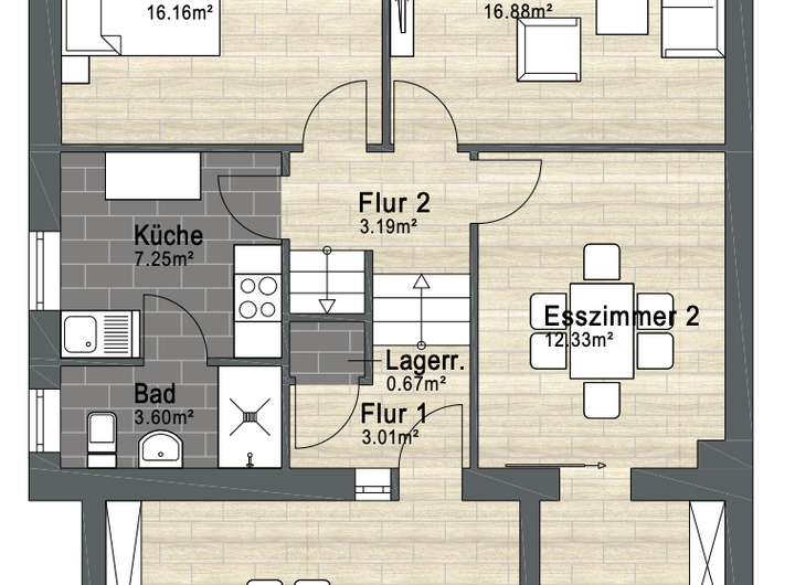 Auf dieser Ebene befindet sich zwei weitere Zimmer, die multfunktionell als Kinderzimmer für große Familien, als Homeoffice oder zum Wohnen mit Mehrgenerationen genutzt werden können.