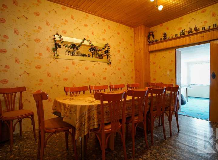 Sie betreten diese Immobile über einen Anbau, der momentan als Esszimmer genutzt wird.