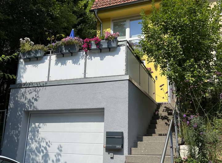 Aufgrund der Hanglage betreten Sie das Haus straßenseitig im untersten Geschoss des Hauses. Hier steht Ihnen neben der Wohndiele mit stylischer Garderobe und dem modernen Gäste-Duschbad (2022 modernisiert), mit Anschluss für Waschmaschine und Trockner, ein geräumiges Gäste- oder Arbeitszimmer mit Zugang auf die große Sonnenterrasse zur Verfügung.