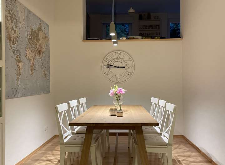 Vor dem Haus steht Ihnen eine Garage und ein Stellplatz zur Verfügung. Eine hauseigene Entkalkungsanlage sorgt für weiches Wasser. Die Video-Gegensprechanlage, die sich einfach mit Ihren Mobilgeräten verbinden lässt, sorgt für Sicherheit.