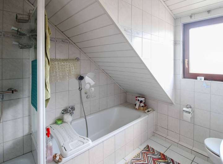 Rund 130 m² familienfreundlicher Wohnfläche mit 5 Zimmern, darunter 3 Schlafzimmer, werden in dieser Immobilie geboten - ideal für Paare und Familien. 2 Badezimmer mit Dusche und Badewanne sowie ein Gäste-WC zählen ebenfalls zum Grundriss des Objektes. Ein besonders edles Detail im Hausinnern ist der robuste Holzparkettboden. Eine Einbauküche gehört ebenfalls zu der Ausstattung.