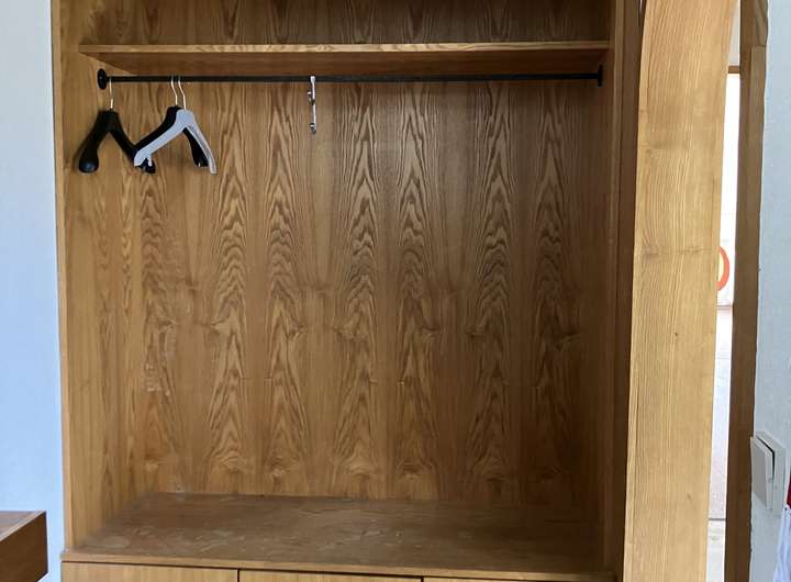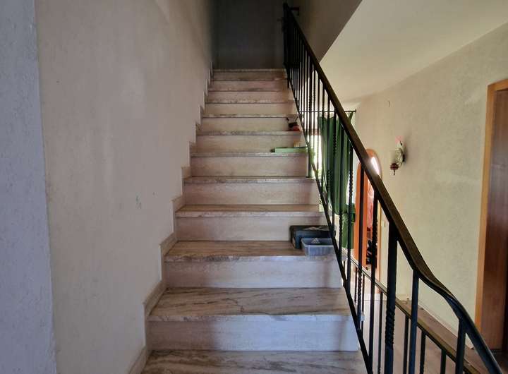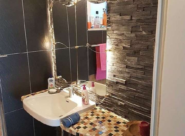 Die hochwertige Ausstattung gewährleistet modernen Komfort und stilvolles Wohnen. Auf der Hauptetage befindet sich eine großzügige offene Küche mit einer individuell angefertigten Kochinsel aus Eichenholz, das Herzstück des offenen Wohnkonzepts. Der Boden variiert zwischen edlem Travertin Stein, gemütlichem Laminat und Keramik, während die Wände mit Marmorputz und dekorativer Tapete gestaltet sind.