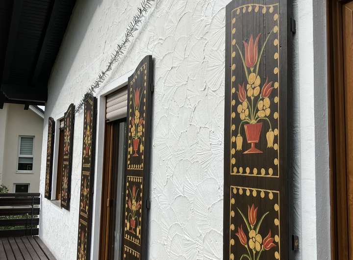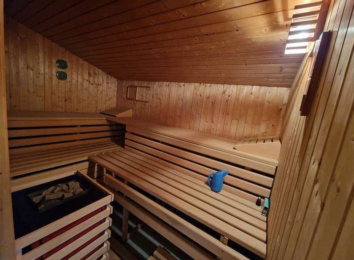 Besondere Highlights des Hauses sind der atemberaubend lange Balkon, eine Bar, eine Sauna sowie zwei Kamine, einer davon als Kachelofen ausgeführt. Die Doppelgarage mit automatischen Toren bietet Platz für Fahrzeuge und zusätzlichen Stauraum.