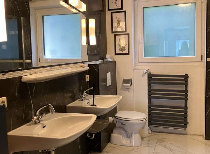 Insgesamt gibt es 4 Badezimmer, darunter ein neu gestaltetes Hauptbadezimmer und ein Gästebadezimmer. Bodenheizungen sorgen für angenehme Wärme in der Küche und im Hauptbadezimmer. Die dreifach verglasten Kunststofffenster bieten eine perfekte Balance zwischen Ästhetik und Energieeffizienz.