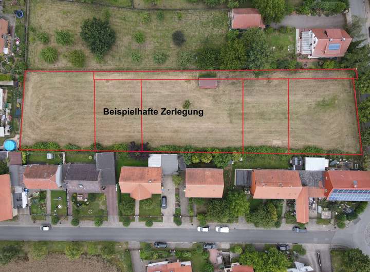 Das Gesamtgrundstück hat eine Größe von ca. 3500 qm, das auf Wunsch der Käufer zugeschnitten wird.