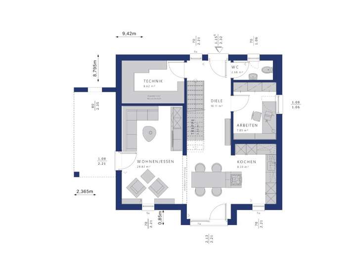 + Ausführung als Effizienzhaus 55, nach Ihrer Wahl selbstverständlich auch als Effizienzhaus 40 oder 40 plus,