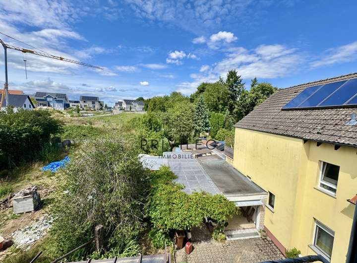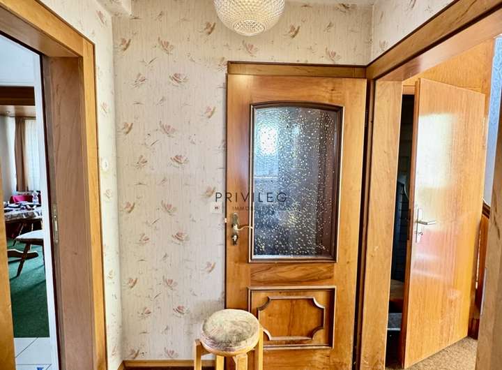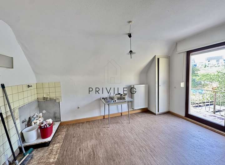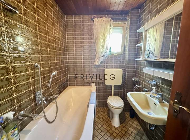 Im Obergeschoss erwarten Sie ein weiteres Wohnzimmer, ein Schlafzimmer, ein Kinderzimmer, eine Küche, ein Bad sowie ein Balkon mit Blick ins Grüne. Das Dachgeschoss wurde 1968 ausgebaut und bietet zwei Kinderzimmer sowie ein Duschbad.