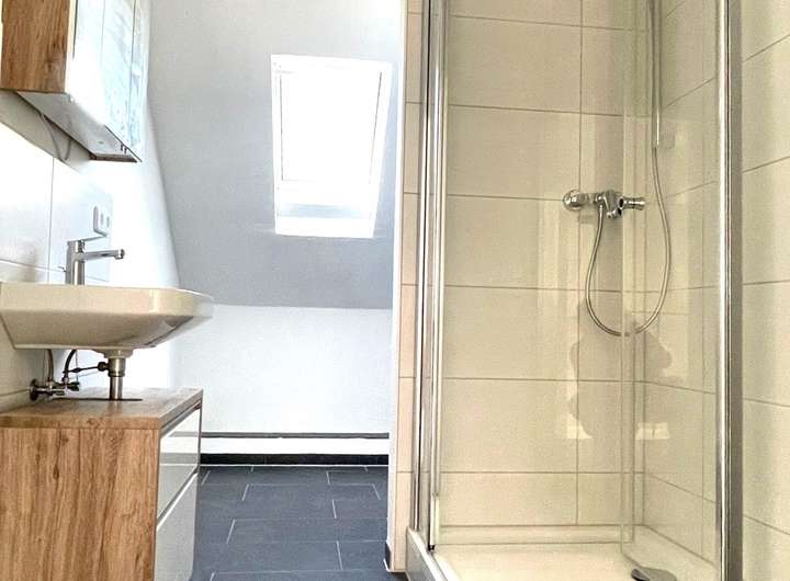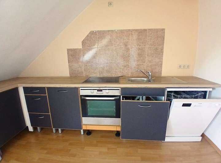 Zwei große Zimmer, Duschbad, sep. WC, Wohn-Flur, komplette Küche mit Einbaumöbel.