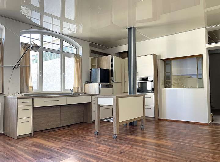 Großzügiges Atelier/Büro, mit offener Einbau-Küche, Wellnessbad und sep. WC sowie zwei weiteren Räumen. Die Fläche kann selbstverständlich auch als Wohnraum genutzt werden.