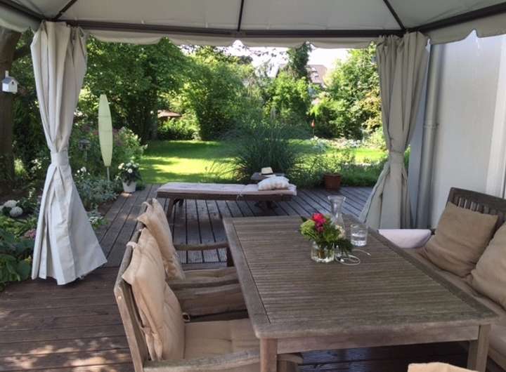 Sie werden ungeduldig auf den Herbst warten, denn die Bodentiefen Fensterelemente ziehen den Blick immer wieder ins Grüne. Die umlaufende Douglasien-Holzterrasse in Westausrichtung mit barrierefreiem Austritt in dem angelegten Garten, verspricht unvergessliche Zeit im Kreise Ihrer Lieben. Sie werden bereits ab dem frühen Vormittag von der Sonne verwöhnt. Für den nötigen Schatten sorgt die elektrische Markise.