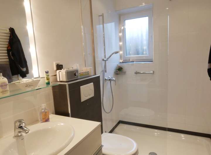 - Master Bad und Gäste WC mit aufwändigen angepassten Einbauelementen
