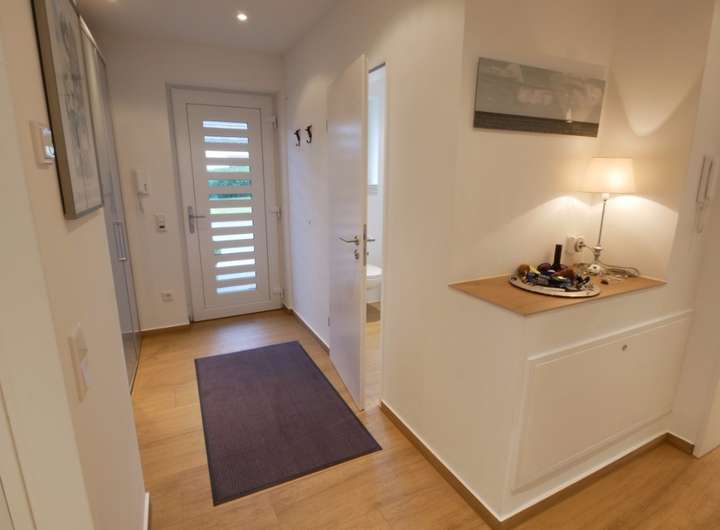 Der Eingangsbereich ist klassisch gehalten - mit Gäste-WC und Platz für z.B. einen Garderobenschrank. Hier gibt es keinen verschenkten Raum. Ähnlich wie in den südländischen Regionen ist man beim Eintritt direkt mitten im Geschehen. Die offene Küche mit frei stehendem Küchenblock ist eine Augenweide - hier werden Ihre Gäste als erstes empfangen.