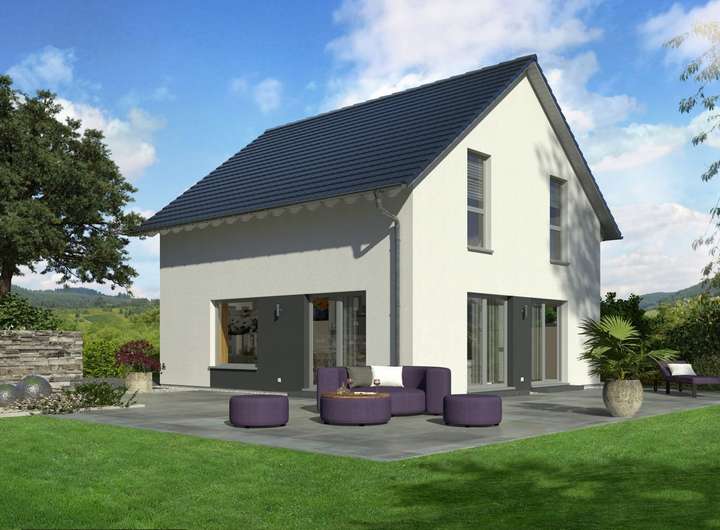 Zeitlose Eleganz außen, Weite und ein besonderes Raumgefühl innen - das ist unser Design 10. Unter dem Satteldach warten hier rund 135 m² auf zwei Ebenen darauf, bezogen und mit Leben gefüllt zu werden. Im Erdgeschoss ist Offenheit Trumpf: Hier erstreckt sich der große Wohn-Ess-Koch-Bereich nahezu über die gesamte Ebene, wird nur durch die zentral platzierte Treppe von der Diele abgetrennt. Das Ergebnis: ein lichtdurchfluteter, einladender und großzügiger Bereich zum Wohlfühlen und Treffen. Im Eingangsbereich stehen zudem ein kleines Gäste-WC sowie ein großer Hauswirtschaftsraum zur Verfügung. Über die mittig gelegene Treppe geht es ins Obergeschoss. Hier ist ausreichend Raum für Eltern und bis zu zwei Kinder. Die Eltern verfügen über ein großzügig geschnittenes Reich mit separatem Ankleideraum, zwei große Kinderzimmer lassen ebenfalls keine Wünsche offen. Abgerundet wird das Raumangebot in der oberen Etage durch ein großes Badezimmer mit Dusche, Wanne und WC.