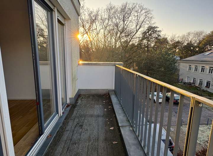 Abseits vom Trubel und dennoch gut angebunden befindet sich dieses besondere Wohnensemble innerhalb einer weitläufigen, grün angelegten Wohnanlage mit altem Baumbestand. Die Architektur greift klare Bauhaus-Elemente auf und verbindet sie mit klassischen Details – das Ergebnis ist ein ruhiges, unaufdringliches Wohnumfeld mit eigener Handschrift.