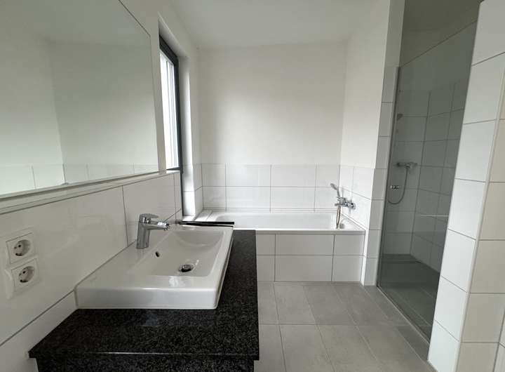 Badezimmer mit Dusche und Badewanne im Dachgeschoss (gefliest)
