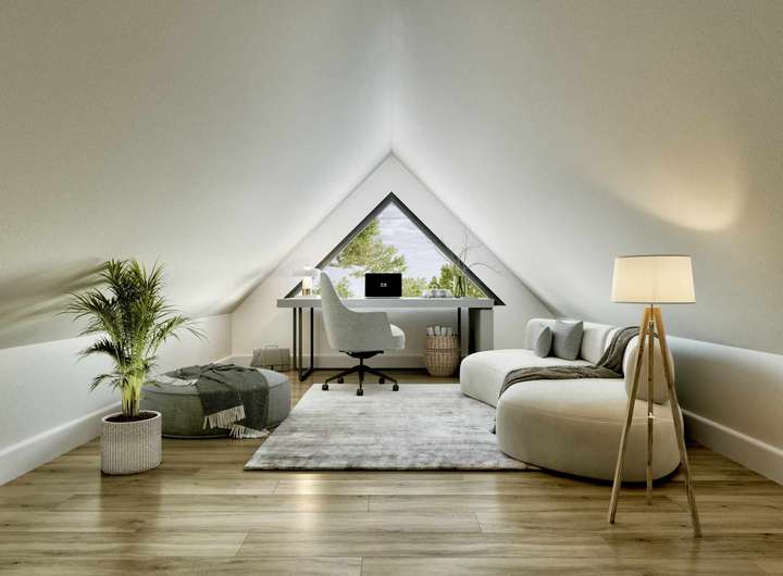 Der ausgebaute Spitzboden bietet zusätzlichen Raum zur individuellen Nutzung – beispielsweise als Rückzugsort, Arbeitsbereich oder Gästezimmer.