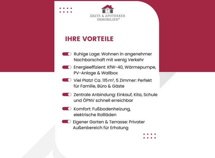 Durchdachtes Raumkonzept mit ca. 115 m² Wohnfläche, verteilt auf fünf optimal geschnittene Zimmer – ideal für Familien, Homeoffice und Gäste.