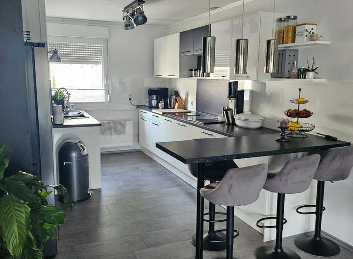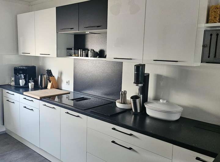 Ein besonderes Highlight ist die hochwertige Einbauküche, die vom Vormieter übernommen werden kann. Die Küche wurde am 20.03.2020 neu aus einem Küchenstudio eingebaut (Neupreis ca. 12.000 €) und ist ausgestattet mit: