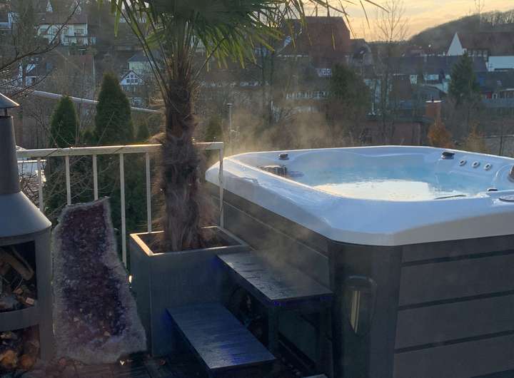 Gäste Zimmer, WC,Terrasse mit Whirlpool, Schlafzimmer und Badezimmer