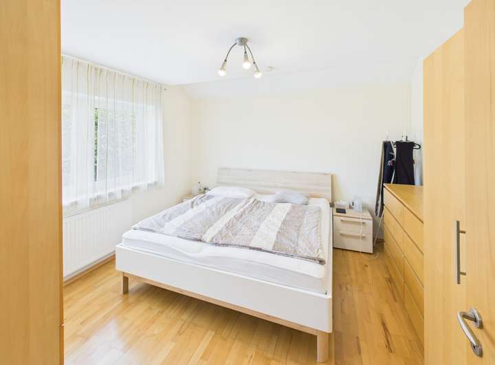 Bereits der helle, einladende Eingangsbereich vermittelt ein Gefühl von Großzügigkeit und führt direkt in das Herzstück des Hauses: den weitläufigen Wohn- und Essbereich. Große Fensterflächen durchfluten den Raum ganztägig mit Licht und schaffen eine warme, behagliche Atmosphäre. Von hier aus eröffnet sich der Zugang zur großen Sonnenterrasse, die den Blick in den liebevoll angelegten Garten freigibt – eine grüne Oase, die zum Entspannen, Spielen oder Gärtnern einlädt. Die offene Küche mit angrenzendem Essplatz bildet den kommunikativen Mittelpunkt des Familienlebens und ist zugleich ein Ort für gesellige Runden mit Freunden.