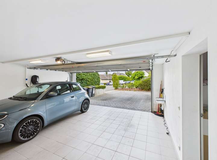 Praktische Details wie der Hauswirtschaftsraum mit Anschlüssen für Waschmaschine und Trockner, die großzügige Garage mit direktem Zugang ins Haus, welche passend zur PV Anlage über eine intelligente Wallbox verfügt, sowie mehrere Außenstellplätze runden das durchdachte Gesamtkonzept ab.