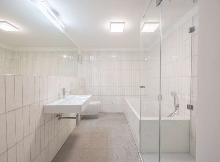• Moderne Bäder mit großformatigen Fliesen