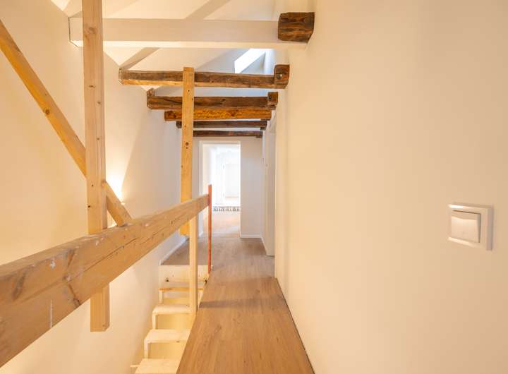 Besonders hervorzuheben ist die über 40 qm große Dachterrasse, die zusätzlichen privaten Außenraum bietet. Der Gewölbekeller ergänzt die Nutzfläche ideal.