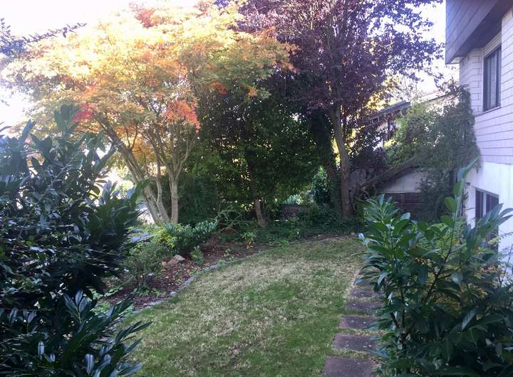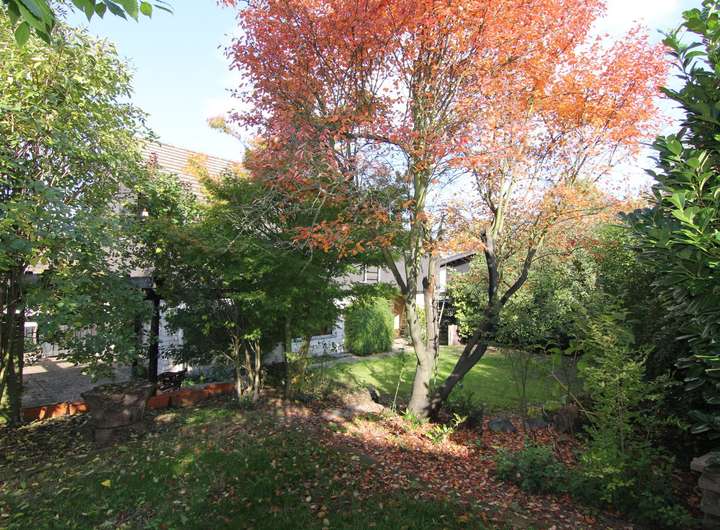 Die Außenanlagen (eingewachsener Vorgarten, großer Garten hinter dem Haus) und eine Garage runden das Gesamtbild ab.